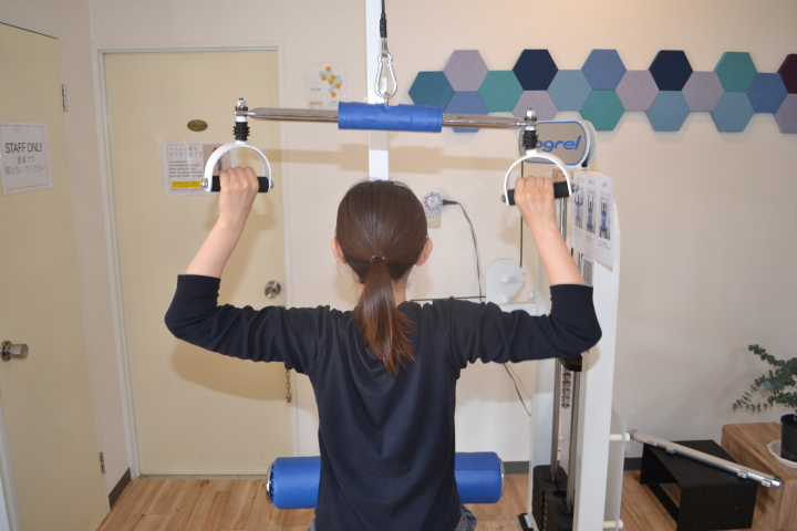さらに、前鋸筋を使った引き動作により、肩甲骨を下方向に安定させ、巻き肩の改善をサポートします。