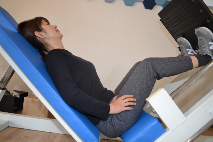 ハムストリング、アキレス腱、臀部をしっかりストレッチした後に、股関節の可動域を広げる運動を行います。